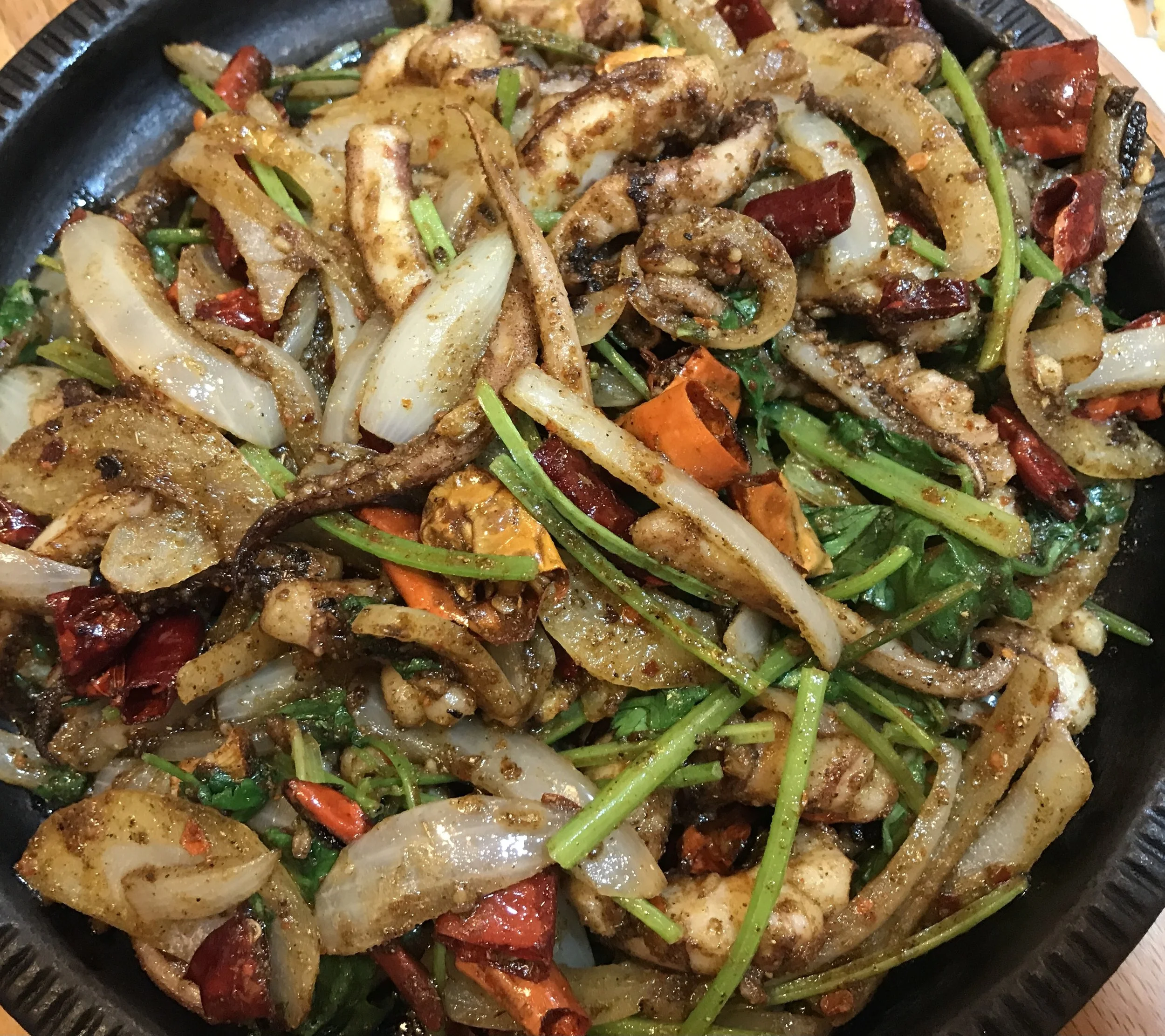 Sizzling squid keel. Squid tentacles and onions and other stuff all in a cumin’y sauce. It’s worth playing Squid Game for their Squid Keel. You loved it.