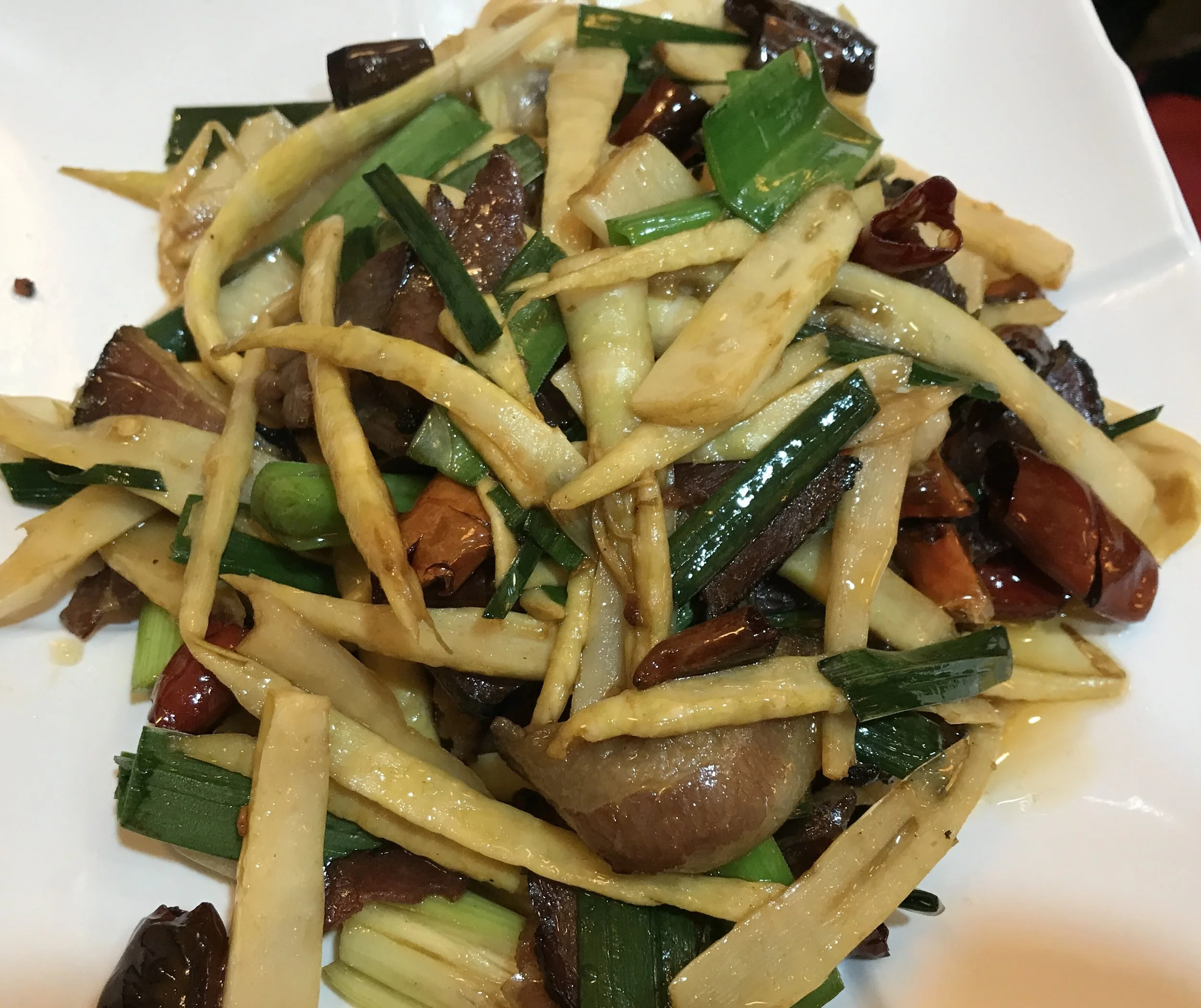 Smoked fresh bamboo shoots with smoked beef. Amazing amazing amazing. You liked it so much that you ordered a second helping. No food at a three star Michelin is more delicious than this.
